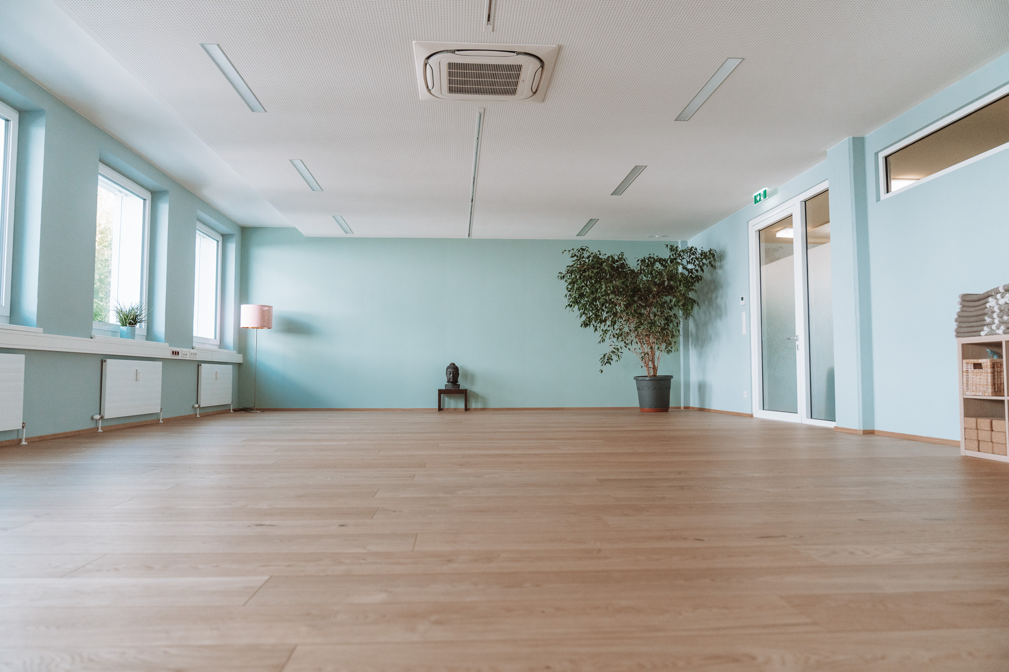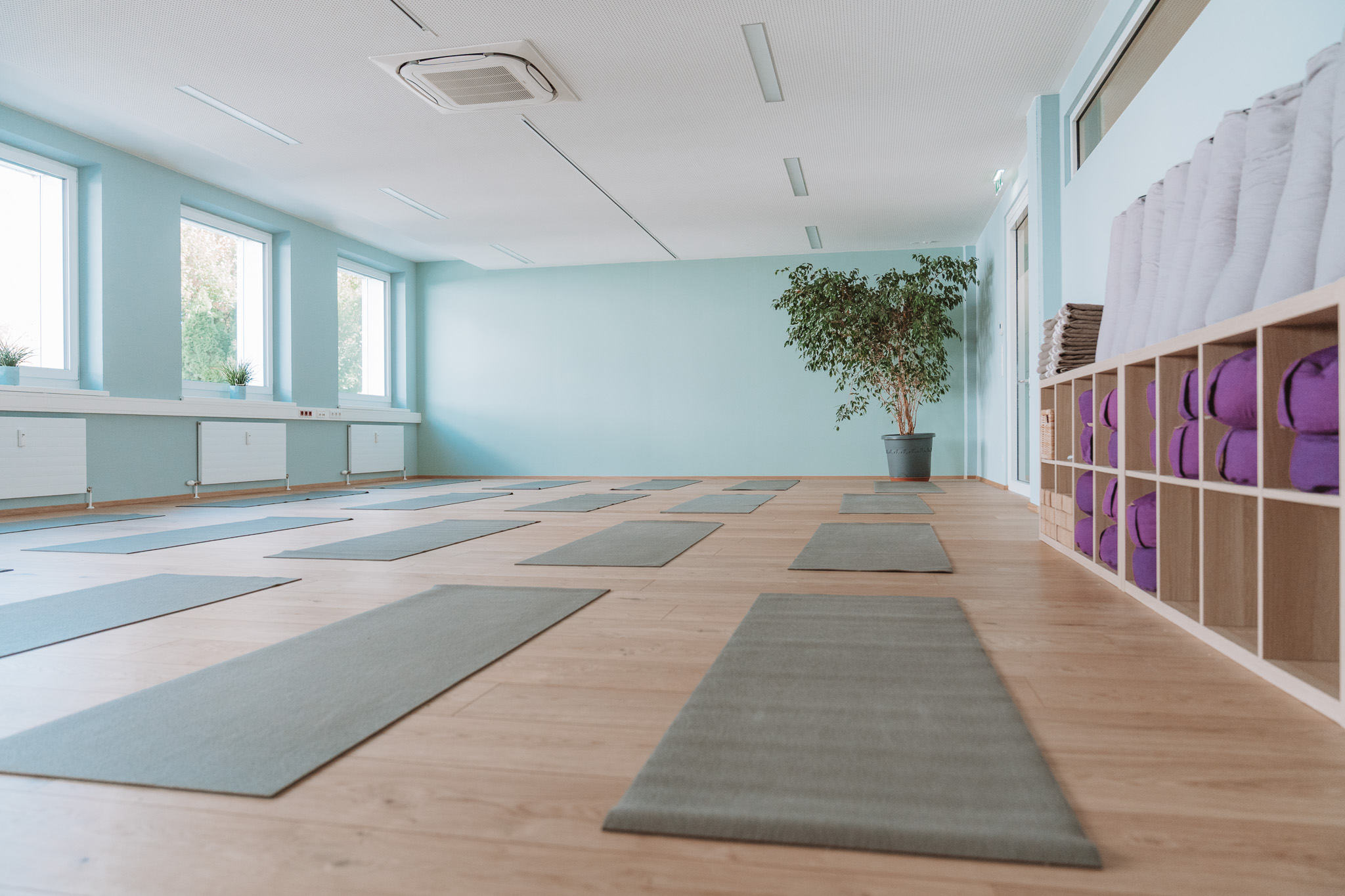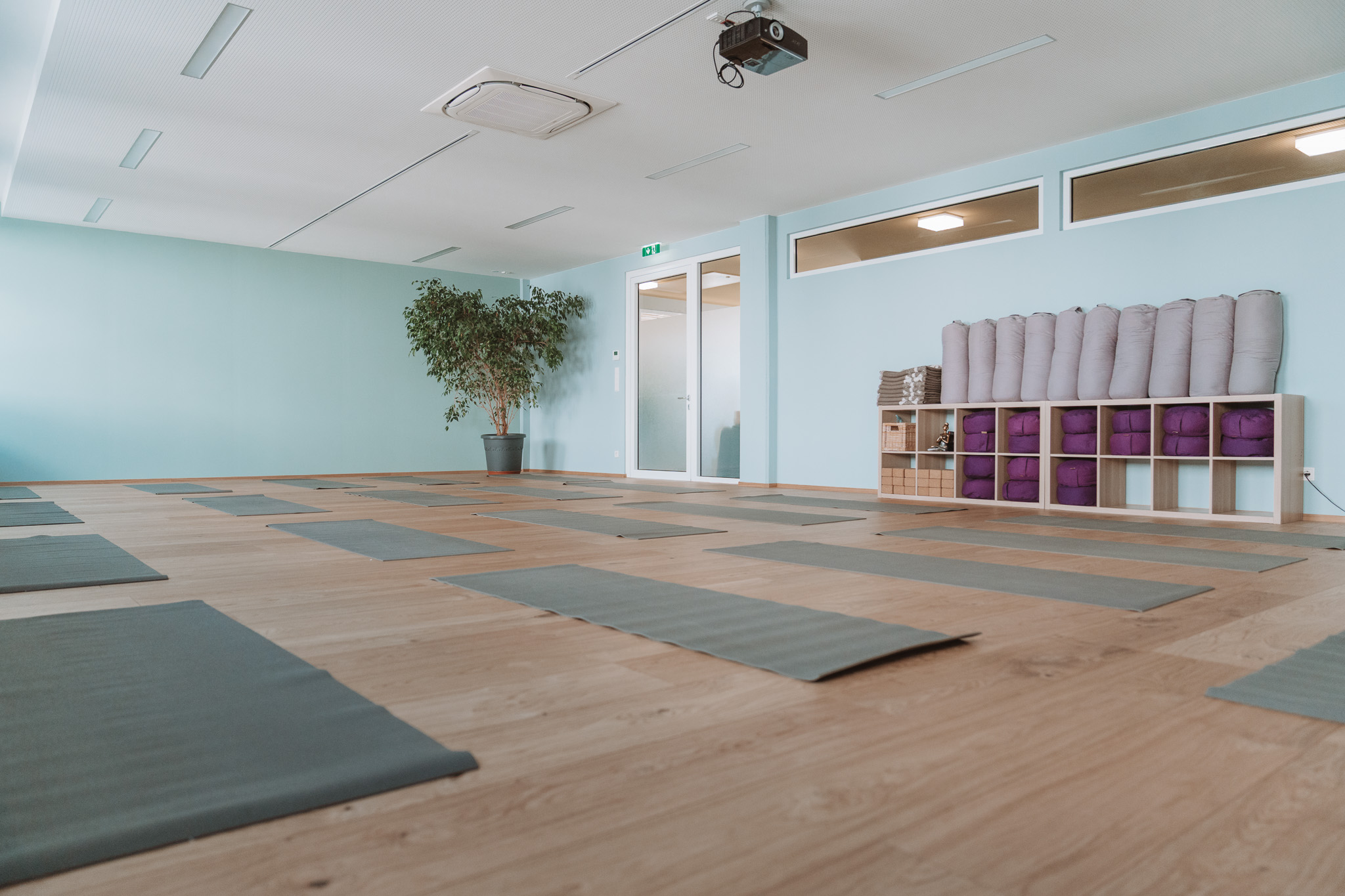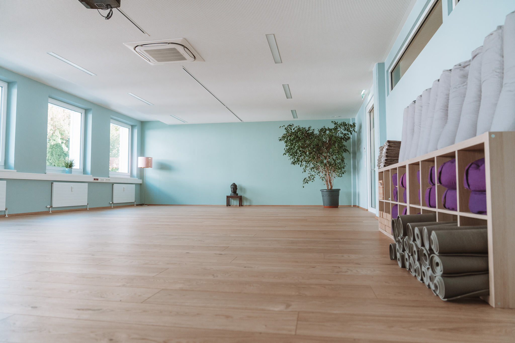 Unser Bewegungsraum (95 m²) bietet viel Platz zum Sein und Wirken – mit feinem Equipment wie Matten, Decken, Bolstern , Meditationskissen, Yoga-Blöcken, Yogastühle, Seminarausstattung wie Tische, Stühle, Beamer, Flipchart, etc.), dass für Workshops, Kurse, Ausbildungen oder Seminare bereitsteht.